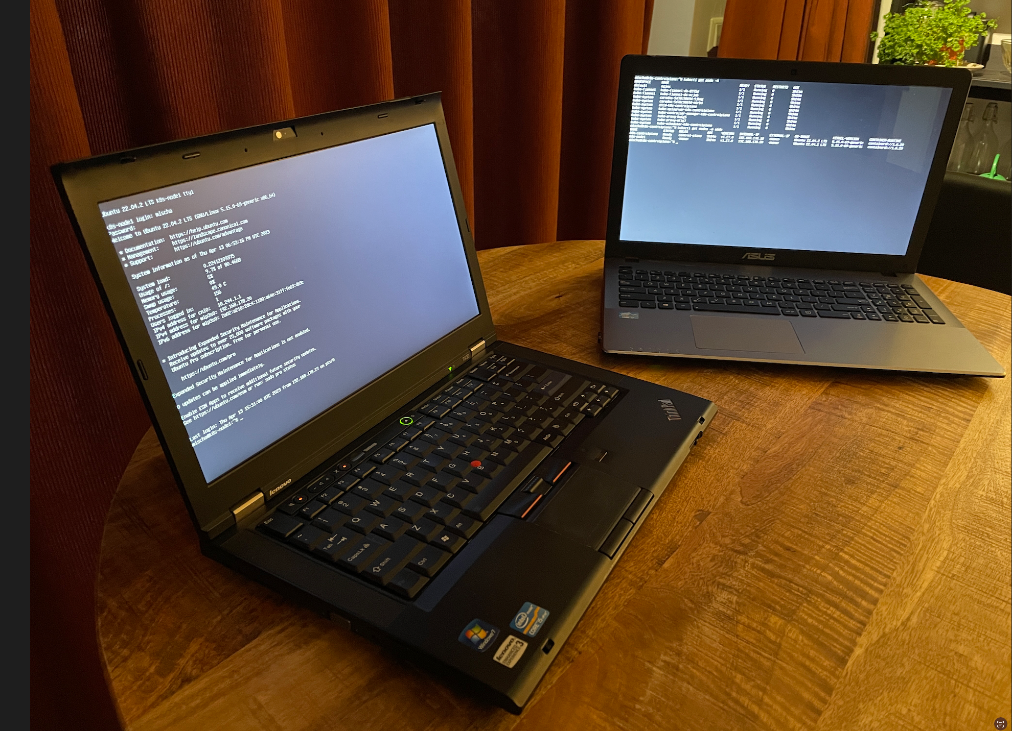 Having these two old laptops lying around, it occurred to me that these machines were basically Raspberri Pi’s with a large form factor and a higher power usage. Why would I need to spend hundreds of euros on these smaller computers if I could just use these laptops as a starting point for my lab?